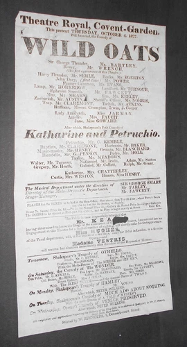 THEATRE ROYAL COVENT GARDEN ORIGINAL THEATRE POSTER 1827. approx 32 x 17 cms
