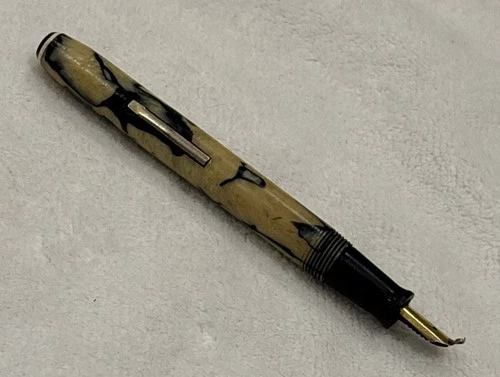 Vintage Fountain Pen Black Cream Marbled 1920s Damaged For Parts/Repair