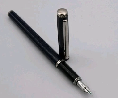 Alfred Dunhill Fountain Pen 18ct Gemline 18k Nib Blue Pinstriped Rare Gift