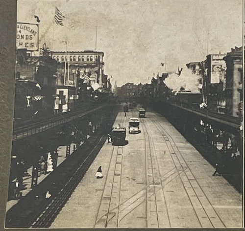 1902 The Famous Bowery New York NY Stereoview Stereoscope Card