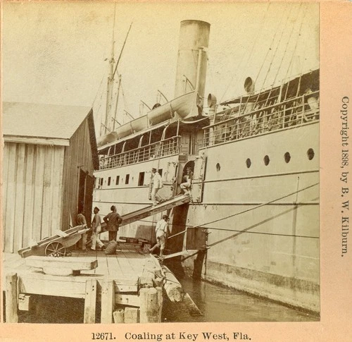 Key West FLORIDA: Workers Coaling a Large Ship 1898 Kilburn E570
