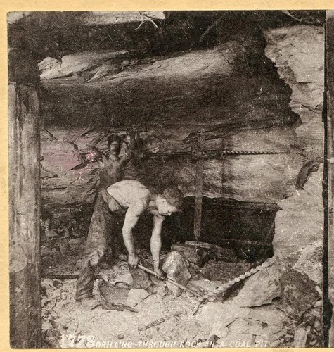 Coal Mining in UK: Drilling thru Rock; Coal Miner; Underground Mine 1890s E636