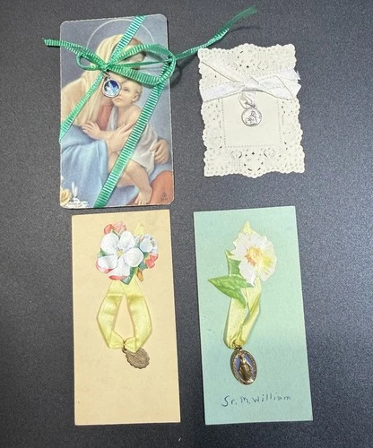 Vintage Catholic Medal Lot Prayer Cards Miraculous Sacred Heart Enamel