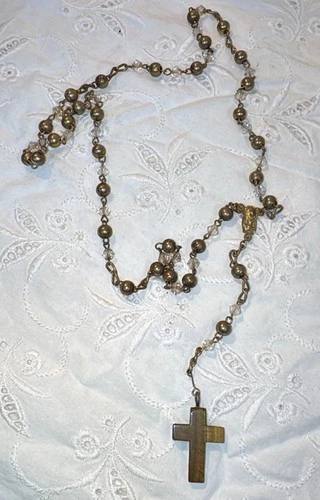 Vintage Catholic Coffee Glass Rosary, Orange Enamel Ctr & Crucifix, France