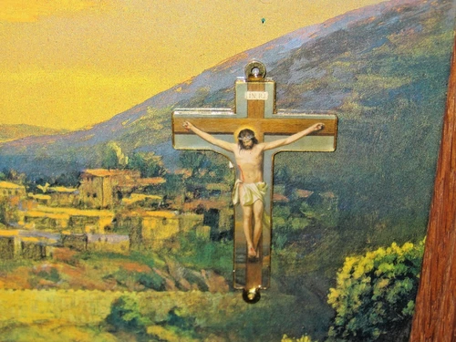 One of a kind metal cross of Jesus Christ On The Cross inside the picture framed