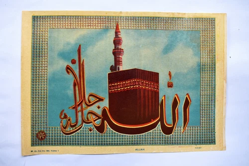 VINTAGE ISLAMIC QURAN CALLIGRAPHY ARABIC LITHO PRINT ALLAH'S NAME COLLECTIBLES
