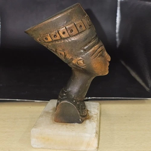 Vintage Egyptian Queen Nefertiti Bust Statue Figurine Metal Marble Base Art Deco