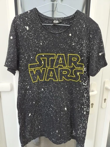 Official Star Wars T-Shirt Medium M Black Starfield Galaxy Splatter Yellow Logo