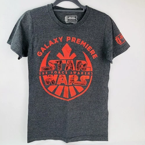 Star Wars Unisex Small T-Shirt The Force Awakens 2015 Galaxy Premiere Gray Logo