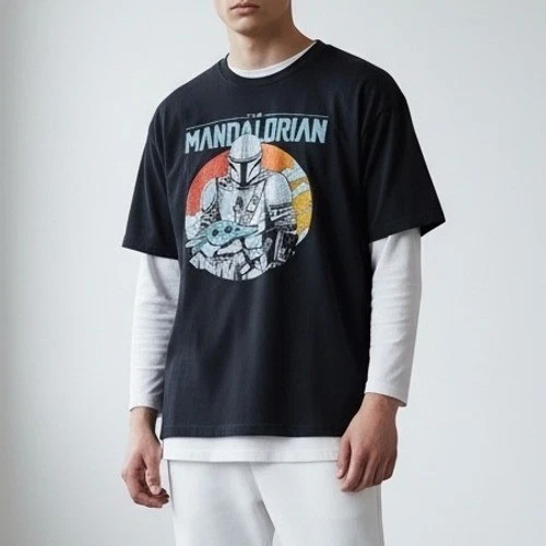 Official STAR WARS Mandalorian Logo Graphic T-Shirt Black Men's Size L