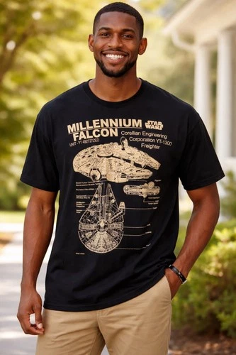 Star Wars Millennium Falcon Blueprint Graphic Tee Men's Black 3X
