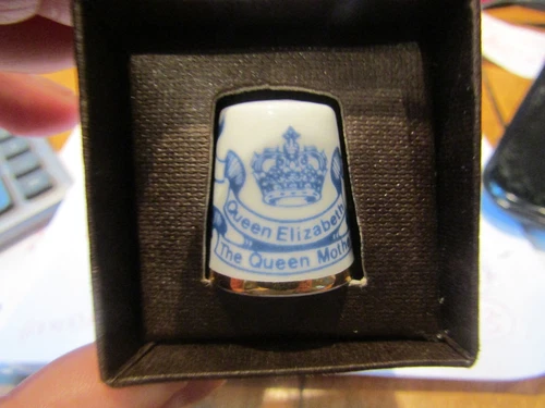 Highland China Thimble SCOTLAND - Blue & White - Queen Mother's 80th Birthday!