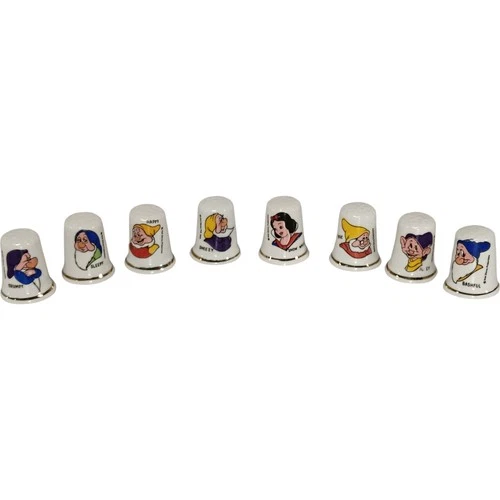 Disney Snow White and Seven Dwarfs Porcelain Thimbles Collectable Set - Preloved