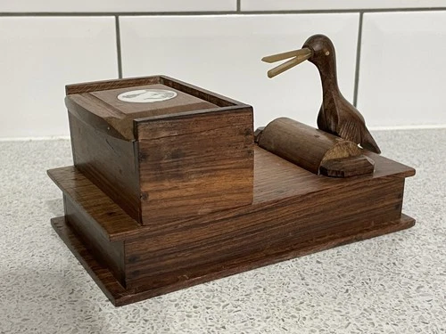 VINTAGE MECHANICAL WOODEN BOBBING BIRD CIGARETTE DISPENSER c1930's-40's