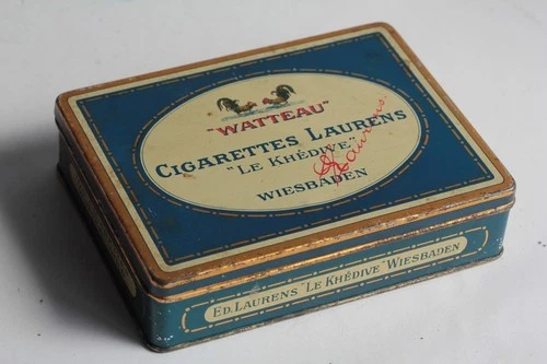 ED. LAURENS Khédive Swiss cigarette box, lithographed tin, tobacco design...