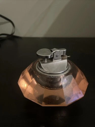 Vintage Crystal Faceted Glass Table Lighter Made In Japan