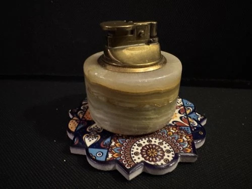 Vintage Azizoff of London Table Lighter - Natural Onyx Marble - Mid-Century
