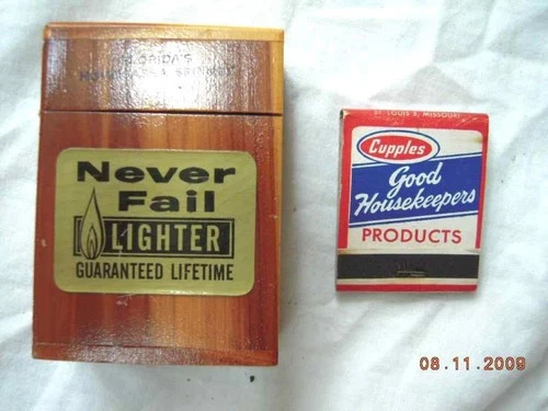 vintage LIGHTER WOOD MATCH HOLDER box souvenir CUPPLES homosassa fl