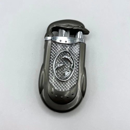 Vintage Style Dolphin Pocket Lighter Refillable Butane Silver Tone Marine Design