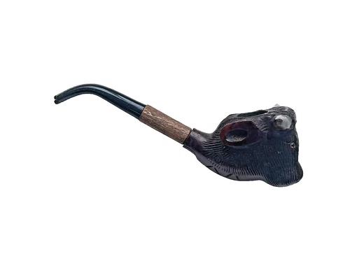 Vintage Novelty Wooden Smoking Pipe with Bull Head