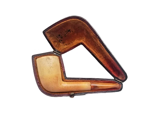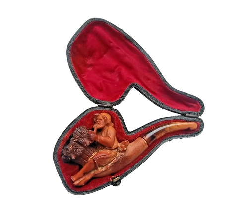 Antique Victorian Meerschaum Cheroot Pipe in Case Bacchus and Cornucopia c1880