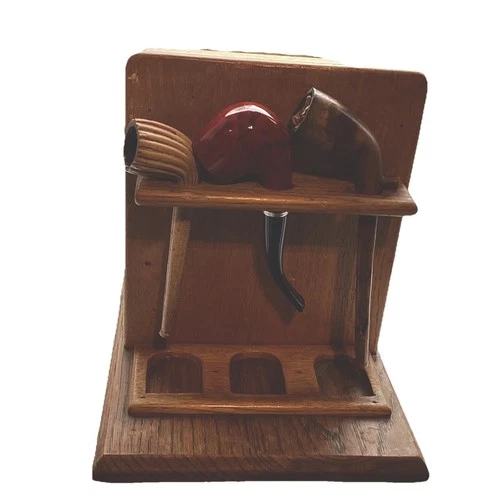 Vintage Pipes And Wooden Pipe Rack With 3 pipes All Vgc one clay pipe