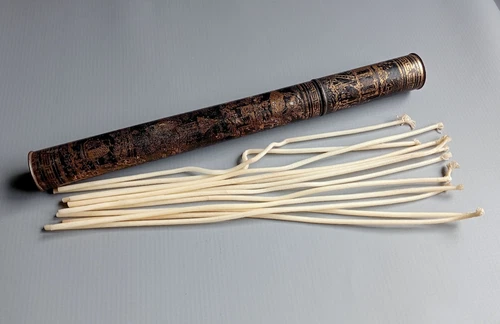 Bryant & Mays Tinplate Chinoisserie Wax Taper Canister + 12 Unused Wax Tapers