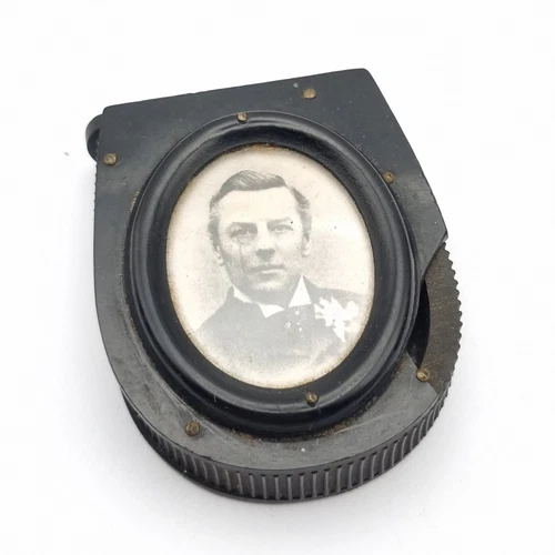 Bakelite Horseshoe Shaped Vesta Case With Photograph Of A Gentleman As Found