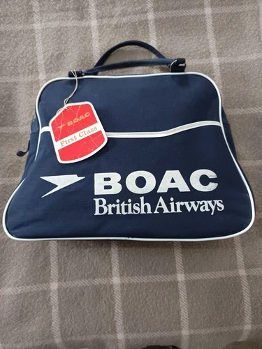Vintage BOAC British Airways Cabin Bag With BOAC First Class Luggage tag VGC