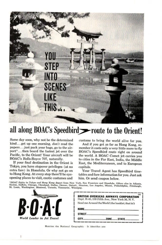 1960 Print Ad British Overseas Airways Corp BOAC Speedbird route to the orient