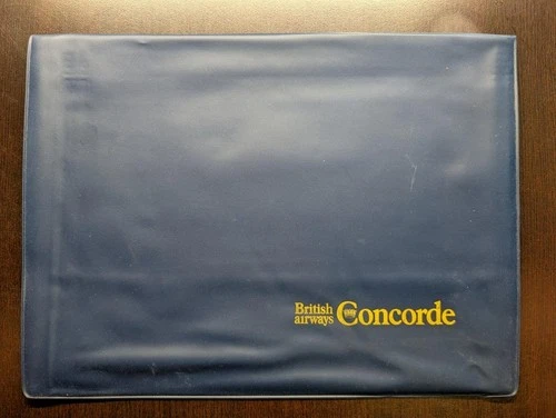 BRITISH AIRWAYS CONCORDE AIRPLANE DARK BLUE PLASTIC FOLD OVER DOCUMENT FOLDER