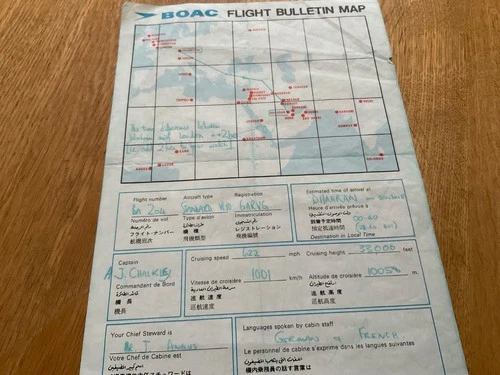 VINTAGE B.O.A.C. AIRLINE FLIGHT BULLETIN MAP SHEET AS SHOWN