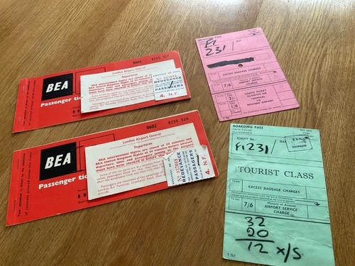 1961 B.E.A AIRLINE FLIGHT TICKETS AND BOARDING PASS
