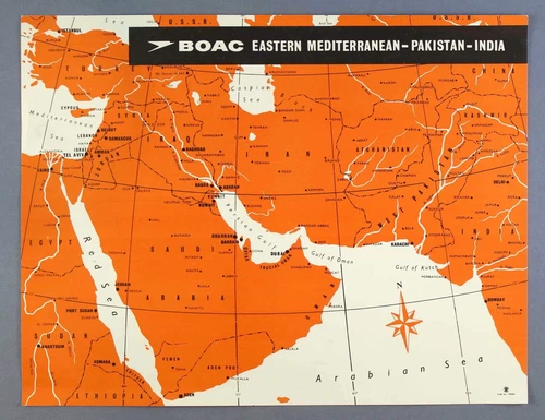 BOAC EASTERN MEDITERRANEAN PAKISTAN INDIA MAP FLIGHT BULLETIN POSITION REPORT 1