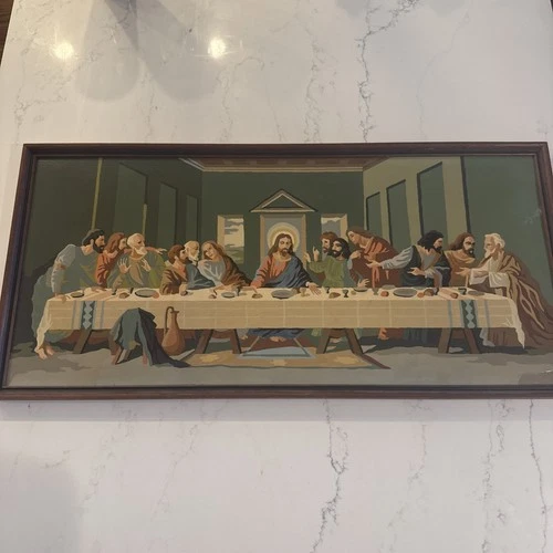 Vintage Processionally Framed Finished Paint by Number The Last Supper Religious