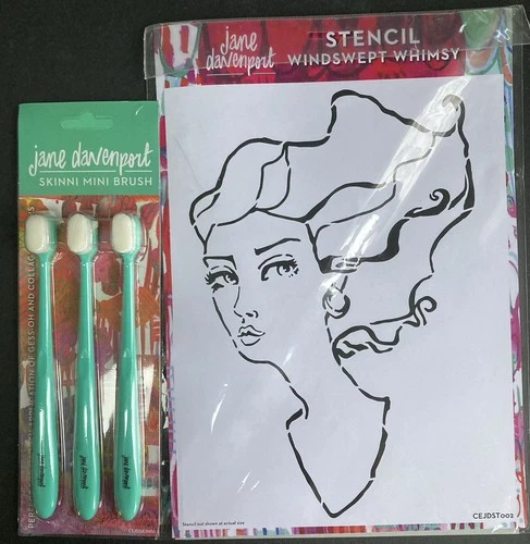 Jane Davenport A4 Stencil + Skinni Mini Brushes BNIP- Windswept Whimsy CEJDST002