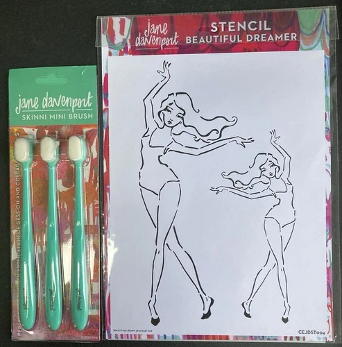 Jane Davenport A4 Stencil & Skinni Mini Brushes - Beautiful Dreamer CEJDST004