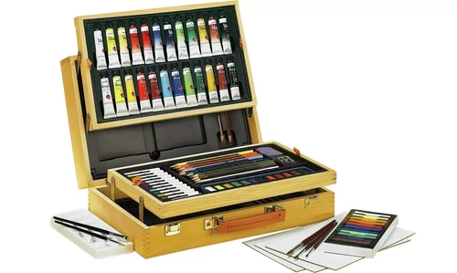 YXSH Art Set 84pc - Acrylic Paints Watercolours Oil Pastels Pencils & Brushes