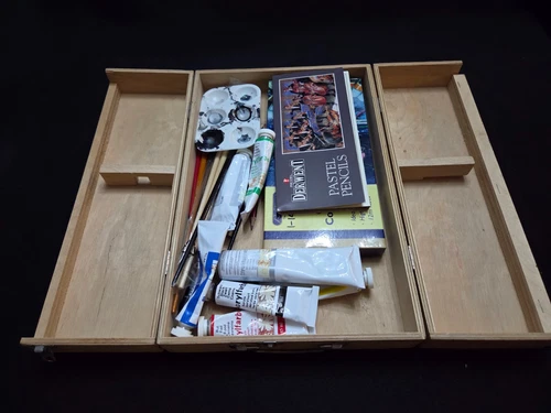 Wooden, Artist's Painting Materials Storage Box, - Carry Case