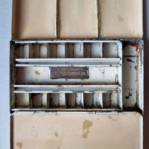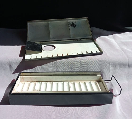 George Rowney Metal Watercolour Paint Box Folding Palette Lid Winston Churchill