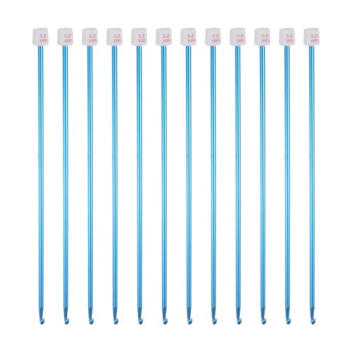 12pcs Crochet Hook 5mm Aluminum Knitting Needles Knitting Accessories, Blue