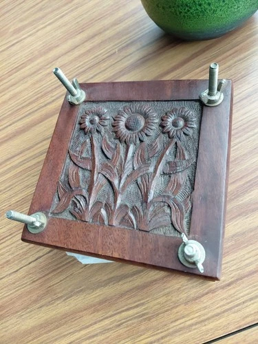 Vintage Hardwood Hand Carved Sunflower Flower Press.15cm Square