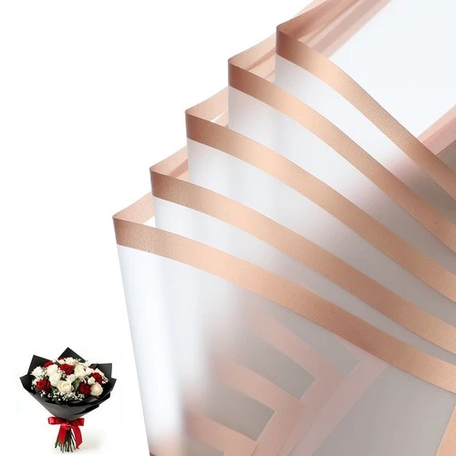 20 Sheets Frosted Flower Wrapping Paper Gold Edge Bouquet Wrap Paper Khaki