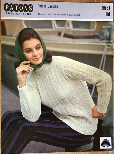 Ladies cable + ribbed jumper KNITTING PATTERN Roll neck sweater Patons 9581