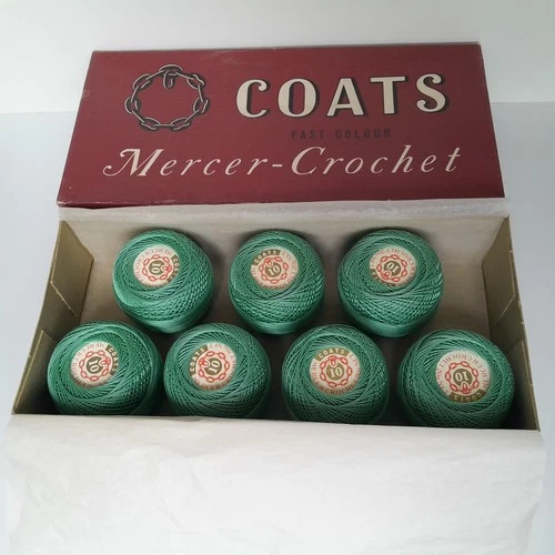 BOX COATS MERCER CROCHET COTTON THREAD # 10 / GREEN SHADE 575 / 7 NEW 20g BALLS