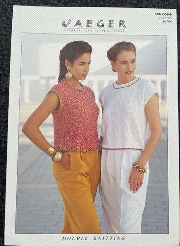 Ladies short sleeve top KNITTING PATTERN round + v neck sweater tops Jaeger 6449