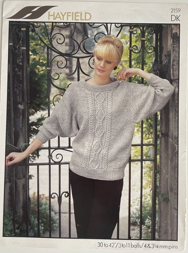 Ladies textured + cable panel sweater KNITTING PATTERN rib jumper Hayfield 2159