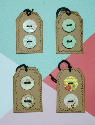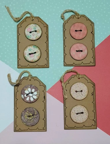 4pc Assorted Paper Buttons Tag Tags Scrapbooking Journals Arts Crafts Handmade