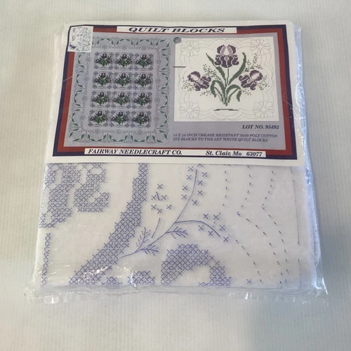 12 Fairway Needlecraft Co. 18" x 18" Stamped Quilt Blocks White USA Quilting