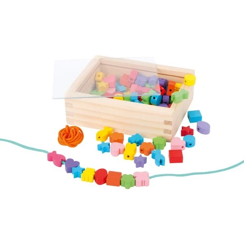 small foot 7594 threading set, with wooden beads in many colours and shapes, inc